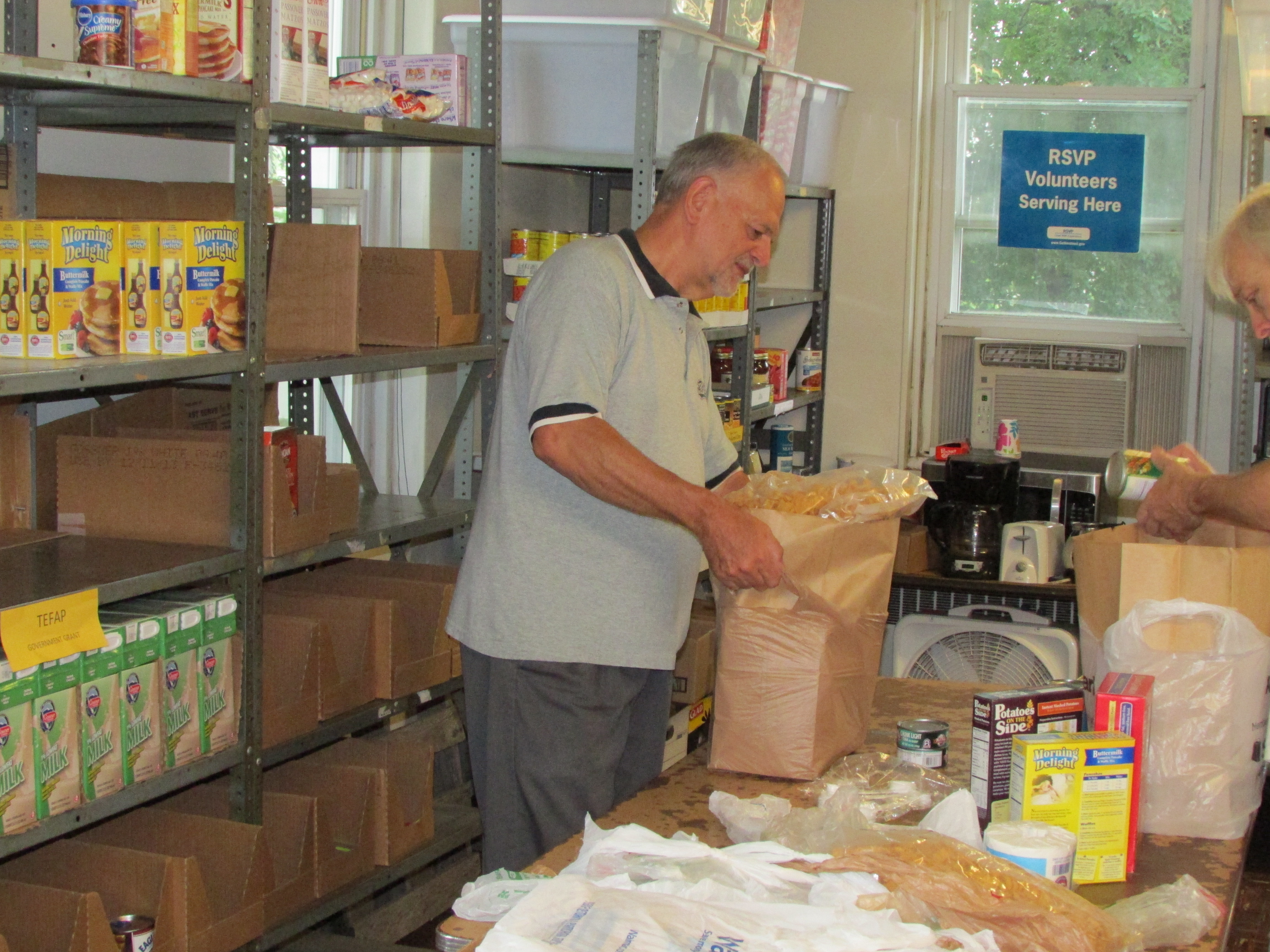RSVP Volunteer hard at work packing, sorting, and distributing food from Eastern Interfaith Outreach Food Pantry to the Essex community in Baltimore County, Maryland.