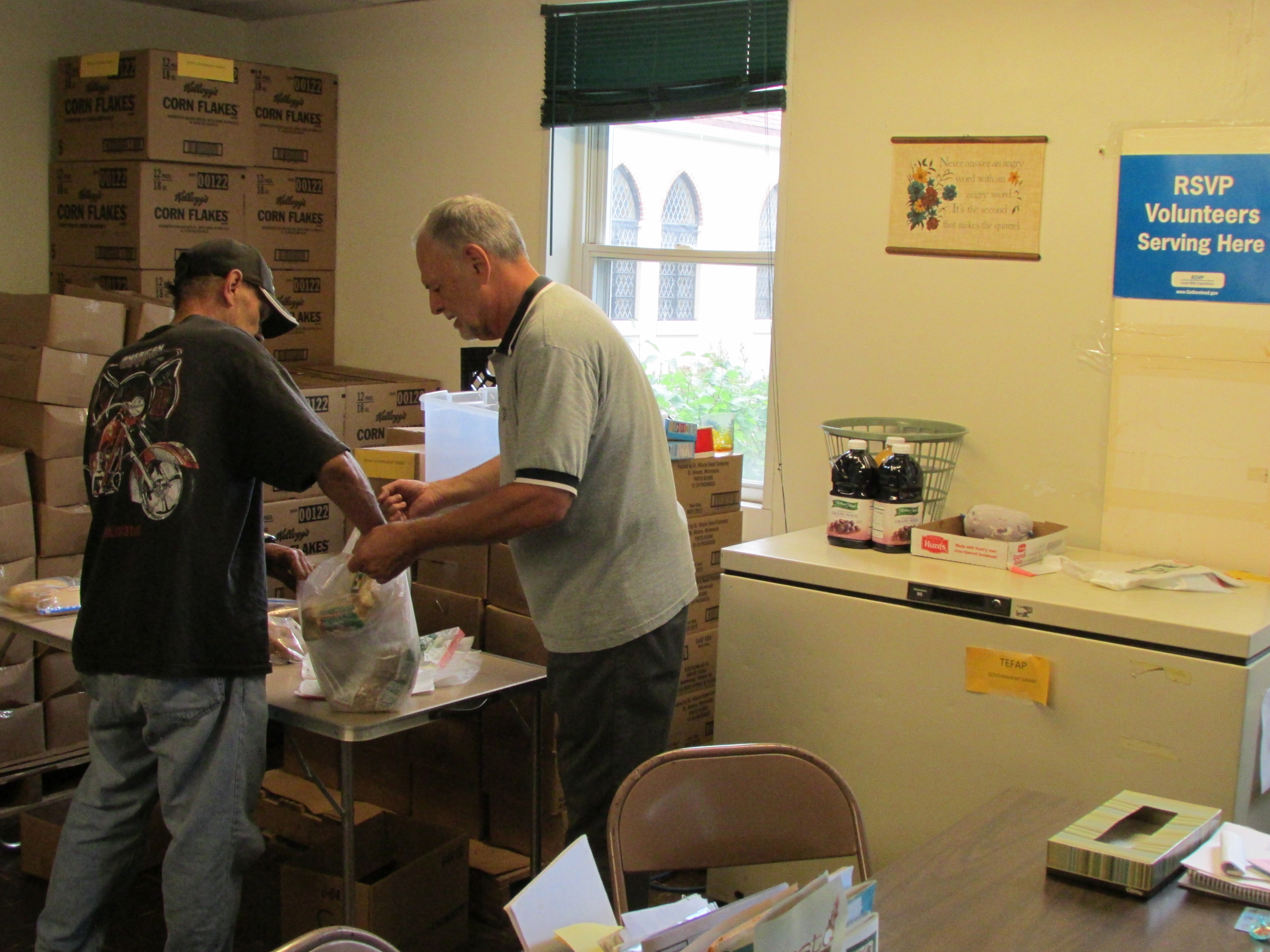 RSVP Volunteer hard at work packing, sorting, and distributing food from Eastern Interfaith Outreach Food Pantry to the Essex community in Baltimore County, Maryland.