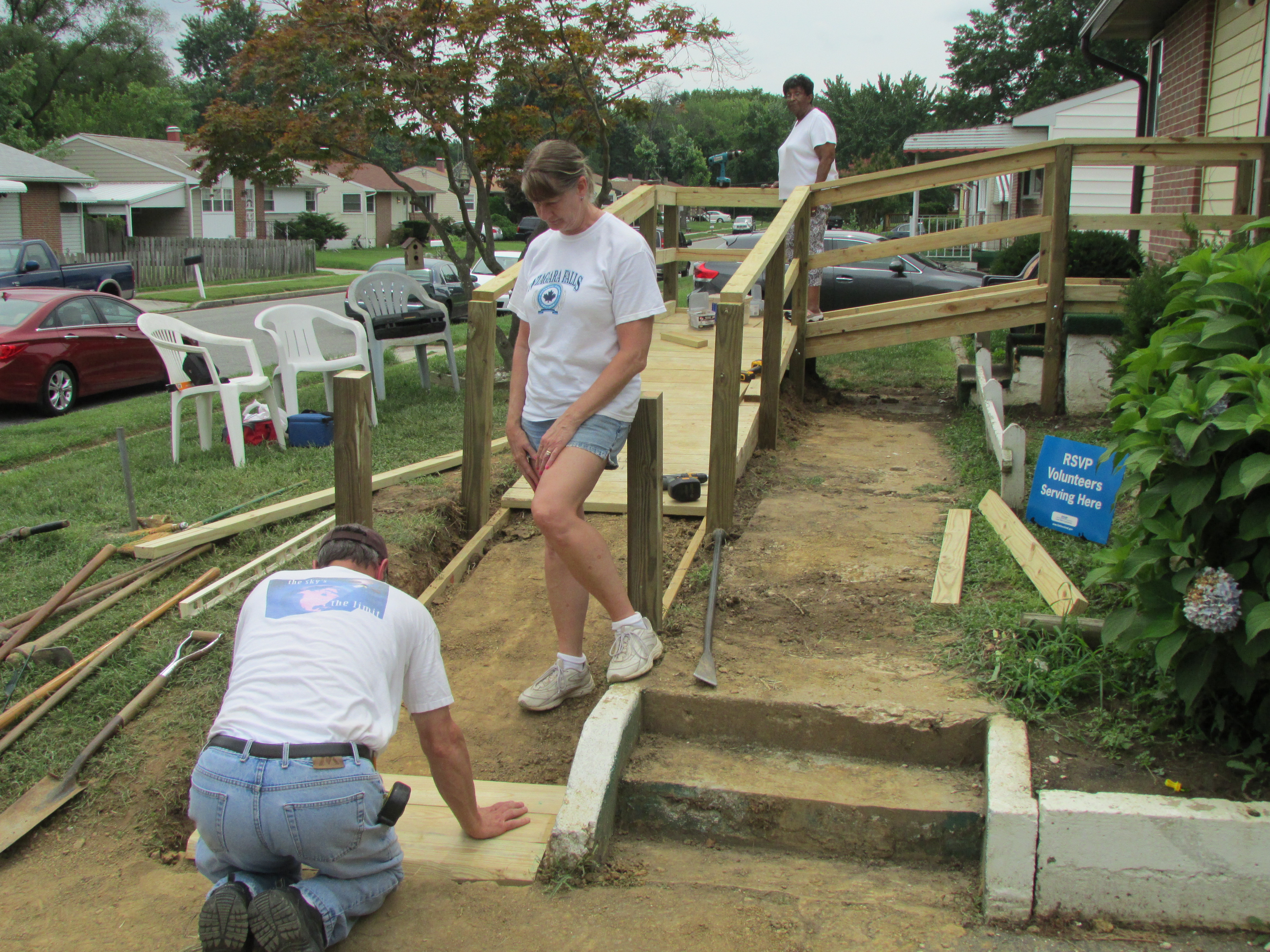 RSVP volunteers serve at the Baltimore County Christian Workcamp annually, completing a full week of home improvement and accessibility modifications. This family received a new wheelchair ramp.
